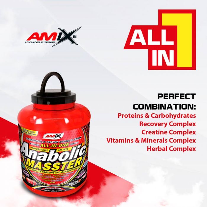 Anabolic Masster ist eine hochwertige All-in-One-Mischung aus Proteinen, Kohlenhydraten und anderen sorgfältig ausgewählten Inhaltsstoffen. Darunter sind Mineralien, Verdauungsenzyme, der Testosteron-Booster Tribulus Terrestris und drei verschiedene Arten von Kreatin. Außerdem enthält er schnelle Kohlenhydrate zur Unterstützung der schnellen Regeneration, sowie Glykogen, um die Energieressourcen wieder aufzufüllen.