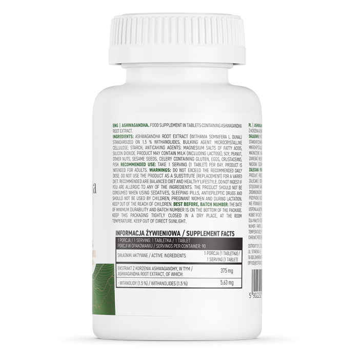 Ashwagandha ist ein funktioneller Extrakt aus der Wurzel von Ashwagandha (Withania somnifera), standardisiert auf 1,5% Withanolide. Mit den praktischen Tabletten kannst du deinen gesunden Lebensstil bequem und einfach bereichern.
