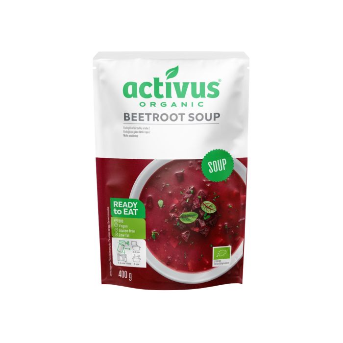 Bio Rote Bete Suppe wird aus Bio-Zutaten hergestellt und enthält nur frische Zutaten ohne den Einsatz von Konservierungsstoffen. Sie hat ein originelles Aroma und Geschmack, das du überall genießen kannst, denn die Suppe ist zum sofortigen Verzehr bereit.