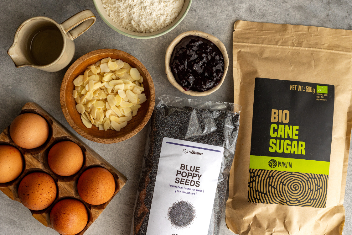Mische Mehl mit Mohn, Zucker, Backpulver und Salz. Gib Eier, Öl und Milch dazu und verrühre alles sorgfältig und gründlich. Gieße den Teig in ein kleines Backblech (unseres hatte die Maße 20×20 cm) und schiebe es für etwa 25 Minuten in den auf 180 °C vorgeheizten Ofen, oder bis ein Zahnstocher trocken aus dem Kuchen herauskommt. Sobald der Kuchen fertig ist, nimmst du ihn aus dem Ofen. Noch heiß verteilst du die Pflaumenmarmelade auf dem Kuchen und bestreust ihn mit Mandelblättchen. Lasse den Kuchen vollständig abkühlen und voilà, er ist fertig zum Servieren.