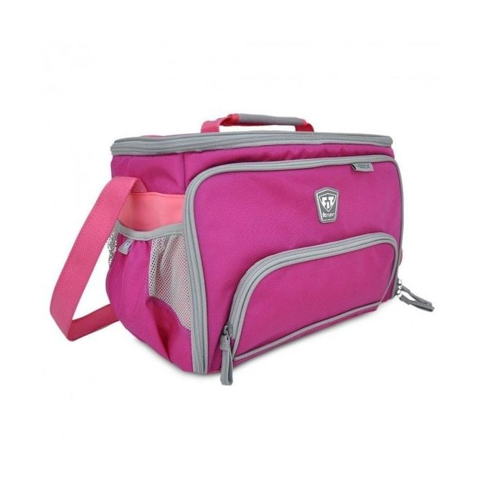 BOX LG Food Bag in pink, in der Sie Ihre gesunden Lebensmittel einpacken und überall hin mitnehmen können. Leichte und tragbare Tasche aus hochwertigem ballistischem Nylon. Die Packung enthält 4 starkverschließbare Lebensmittelboxen (BPA-frei), einen praktischen Shaker für Ihre Nahrungsergänzungsmittel und Proteine sowie 2 Kühlgels, um die Lebensmittel kühl zu halten.