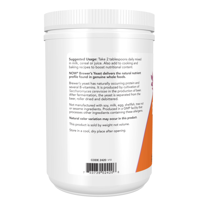 Bierhefe ist Trockenhefe, die aus dem Anbau von Saccharomyces cerevisiae bei der Herstellung von Bier gewonnen wird. Sie sind eine Quelle für Protein, B-Vitamine, Eisen, Kalzium und Kalium. Ihre Verwendung unterstützt das Funktionieren der Immunität, aber auch das Wachstum und die Aufrechterhaltung der Muskelmasse.