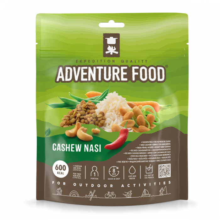 Cashew Nasi ist eine vegetarische Delikatesse , die alle Liebhaber von Hülsenfrüchten begeistern wird. Es enthält Reis, Linsen, Cashewnüsse, grüne Bohnen, Karotten und Lauch in einer köstlichen Satay-Sauce mit würzigem Geschmack. Das alles in einem praktischen Beutel, in dem Sie diese Köstlichkeit bei Wanderaktivitäten in nur 8 Minuten zubereiten können. Es versorgt dich mit wichtigen Nährstoffen und du kannst weiter deinen Zielen entgegen gehen.