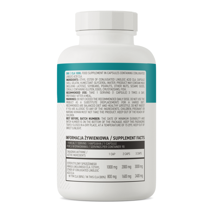 CLA enthält 800 mg Linolsäure pro Portion. Linolsäure ist ein natürlicher Fatburner . Darüber hinaus hilft es, den Cholesterinspiegel im Blut in einem angemessenen Bereich zu halten. Da es essentiell ist und der Körper es nicht selbst herstellen kann , sollte es regelmäßig über die Nahrung oder Nahrungsergänzungsmittel wieder zugeführt werden. Es kommt normalerweise in kleineren Mengen in Pflanzenölen, Fleisch oder Milch vor, während Nahrungsergänzungsmittel eine viel konzentriertere Quelle bieten. CLA wird gemeinhin als Fatburner bezeichnet, da es eines der bekannten Nahrungsergänzungsmittel zur Gewichtsabnahme ist.