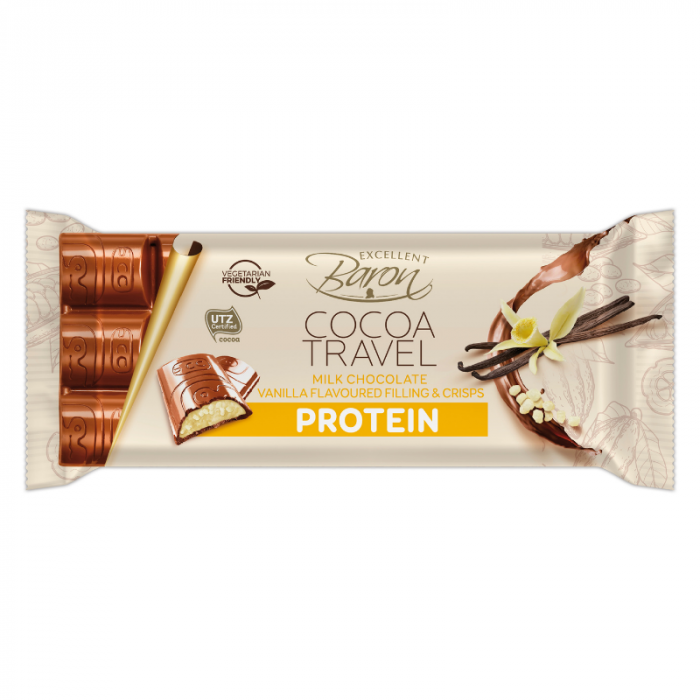 Cocoa Travel Protein Vollmilchschokolade - eine knusprige Schokodelikatesse mit einem hohen Proteinanteil