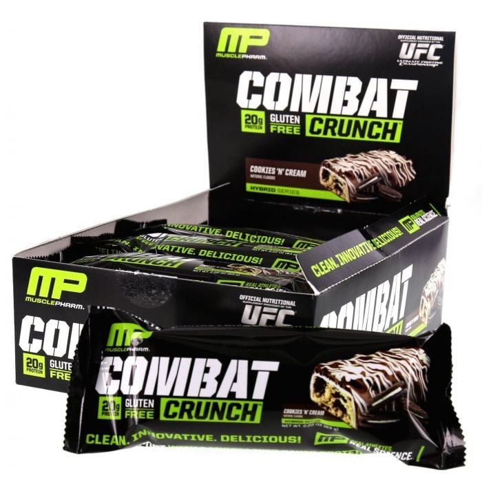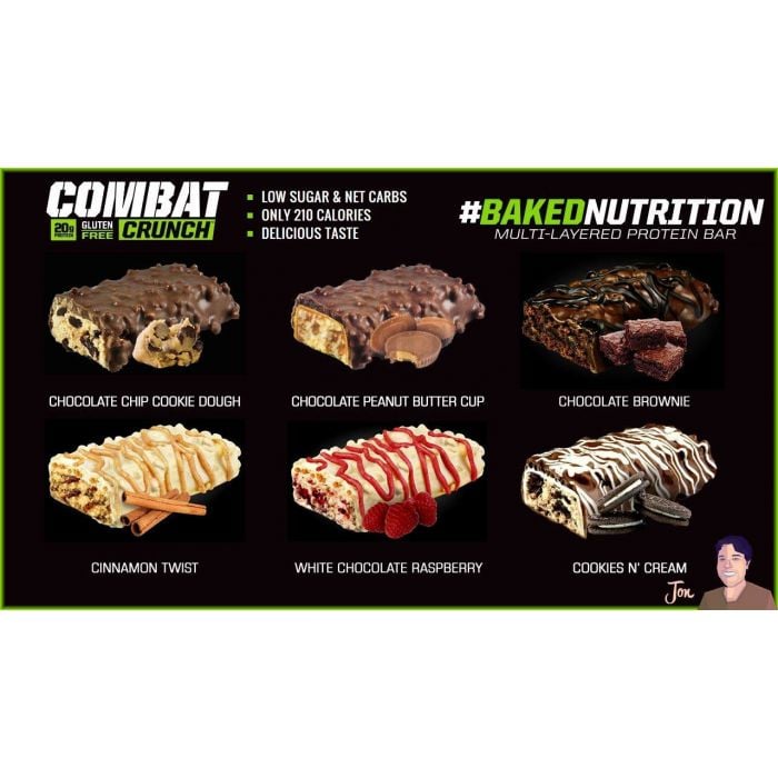 Combat Crunch ist ein Proteinriegel, der nach einem patentierten Backverfahren für einen besseren Geschmack und eine feinere Textur hergestellt wird. Diese Riegel enthalten einen hohen Proteingehalt mit aktiven Kohlenhydraten und viel Ballaststoffen. Combat Crunch enthält keine billigen Proteinquellen, nur erstklassige Proteine (Molkenproteinisolat und Milchproteinisolat). Es hat einen hohen Ballaststoffgehalt, im Gegenteil einen niedrigen Gehalt an einfachen Zuckern, enthält keine Transfette oder Gluten. Der perfekte Snack für alle, die nach hochwertigen Proteinriegeln suchen, die die tägliche Proteinaufnahme ergänzen. Schmeckt aber auch super.