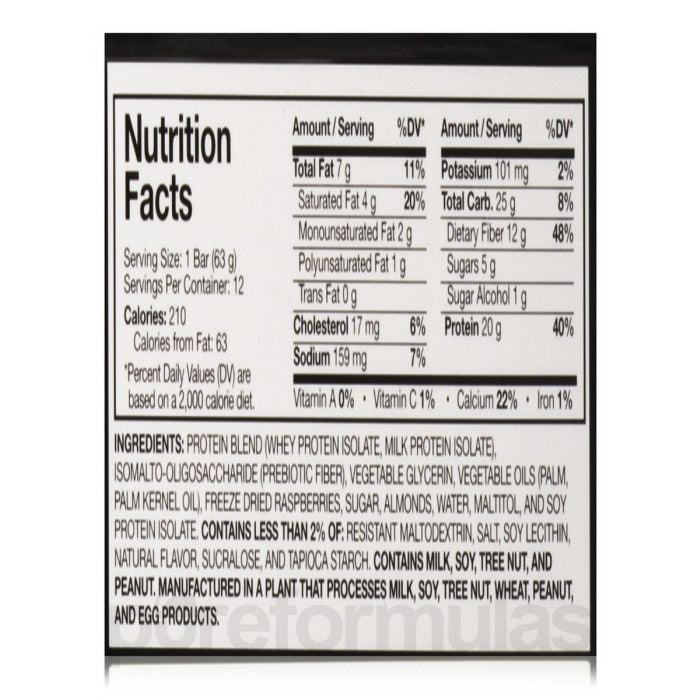 Schoko/ Chip/ Cookie-Geschmack: Proteinmischung (Molkeproteinisolat, Milchproteinisolat), Isomaltooligosaccharide (probiotische Ballaststoffe), Schokoladenstücke (Schokoladenlikör, verarbeitet mit Alkali, Zucker, Kakaobutter, Vanille), Glycerin, pflanzliche Öle (Palme, Palmkernöl), Zucker, Mandeln , Wasser, Sojaproteinisolat, Malitol, Kakao (alkalisch verarbeitet), weniger als 2%: Maltodextrin, Salz, Sojalecithin, natürliches Aroma, Sucralose, Vanille, Tapioka-Stärke.
