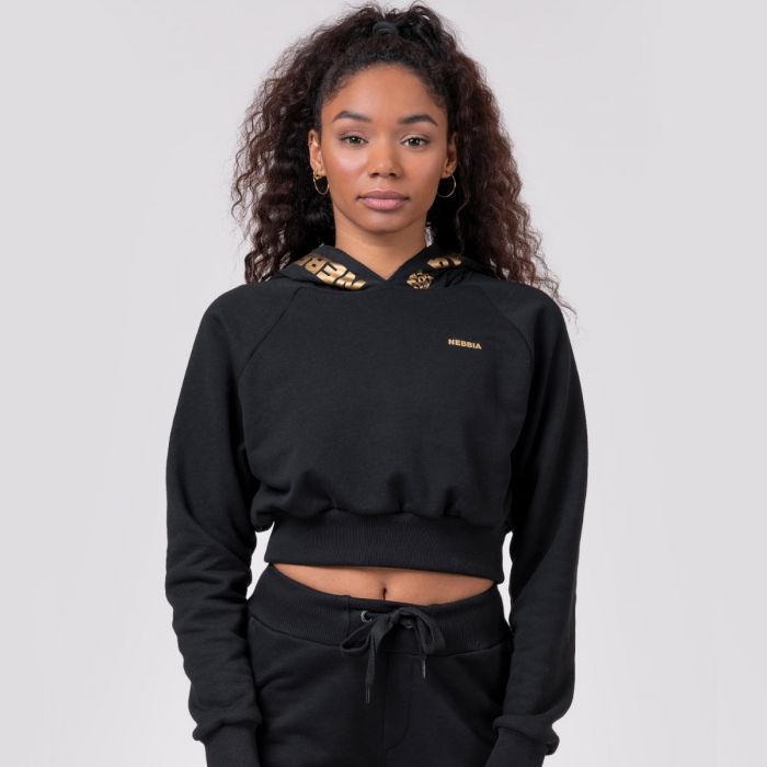 Golden Cropped Hoodie ist ein kurzer Sport Hoodie für Frauen. Er ist aus sehr bequemen und weichem Material gefertigt, sodass er deine Bewegungen beim Training nicht einschränkt. Der einzigartige Schnitt des Hoodies zusammen mit dem elastischen Band am unteren Rand sorgen dafür, dass er sich perfekt an deine Figur anpasst. Außerdem hat der Hoodie eine große coole Kapuze mit dem Nebbia Logo verziert. Trag ihn beim Training, Yoga, Pilates, Laufen oder Skaten, oder als treuen Begleiter für dein Alltagsoutfit.