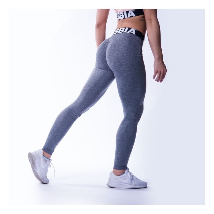 Damen Scrunch Butt Leggings in grau sind stylische Leggings für Frauen, die speziell gerafft ist, was deinen Po betont und schön formt. Die Leggings ist aus ultra leichtem und besonders atmungsaktiven Material gefertigt, wodurch sie selbst bei dem anspruchsvollsten Training immer bequem bleibt. Auf dem oberen Teil befindet sich ein elastischer Bund mit dem ikonischen Nebbia Logo. Der Bund ist zudem mit einem innovativen, rutschfesten Silikon Gummi versehen