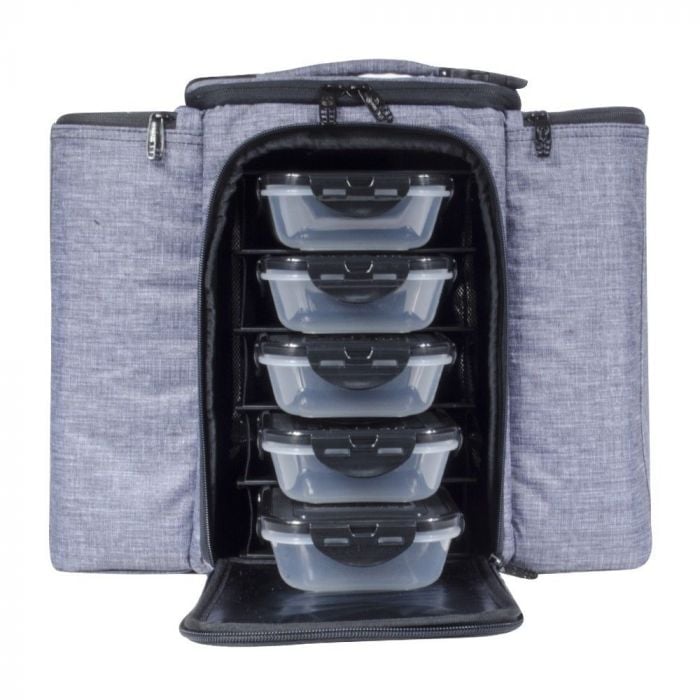 Tasche für Lebensmittel Expert Innovator 500 Static ist ein revolutionärer Organizer für alle Ihre Gänge-Menü, die Sie überall mitnehmen können und immer die Gewissheit haben, dass die Lebensmittel frisch sind. Die Tasche ist transportabel und besteht aus hochwertigem Material - Polyester. Es kann fünf separat zugängliche Schalen enthalten und hat verstellbare Innenböden. Enthält 5 x Hochdichtungsboxen, 1 x große Sporternährungsbox und 2 x hochwertige Kühlgels. Zwei Seitentaschen für Flaschen Wasser, Geschirr, Obst oder Shaker. Der vollständig isolierte Innenraum hält die Lebensmittel über 8 Stunden lang frisch. Es hat eine ergonomische Schulter und einen Gurt für bequemes Reisen.
