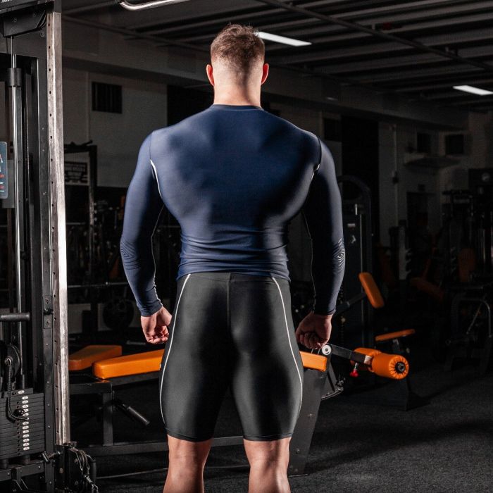 Kompressions-T-Shirt für Männer besteht aus hochwertigem Kompressionsmaterial mit außergewöhnlichen Eigenschaften. Dank seiner Zusammensetzung hält es Ihre Muskeln fest und erhöht die Leistung und das Training. Gleichzeitig entzieht es dem Körper die Feuchtigkeit und hält die Körpertemperatur aufrecht. Sie werden sich in jeder Sportart wohl fühlen.