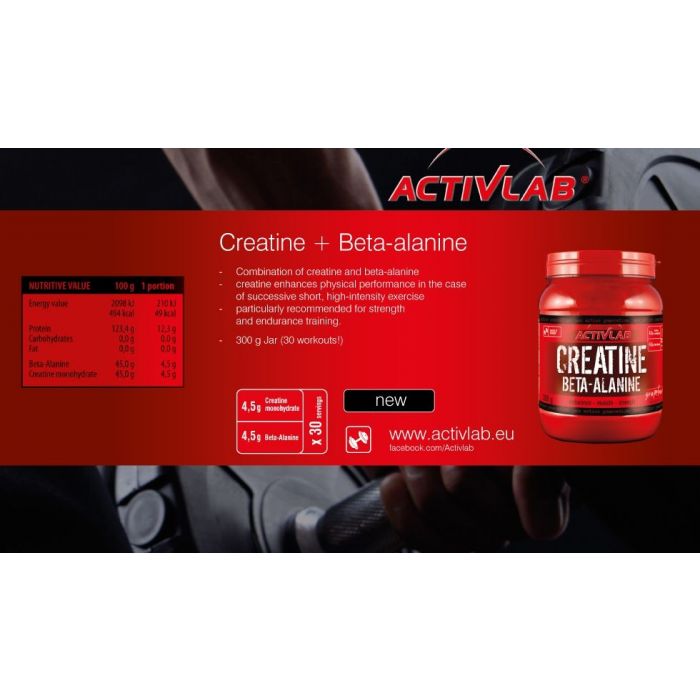 Kreatin Beta Alanin kombiniert Kreatin und Beta Alanin, wodurch die Gesamteffizienz des Trainings bei intensiver körperlicher Aktivität gesteigert wird. Es enthält 4,5 g Kreatinmonohydrat und 4,5 g Beta-Alanin pro Dosis. Kreatin erhöht die intensive körperliche Fitness, während Beta-Alanin das Training verlängert, indem es die Muskelermüdung verzögert. Das Präparat eignet sich besonders für die Zeit des Muskelaufbaus und für diejenigen, die Kampfsportarten, Kraft- und Ausdauersportarten wie Laufen, Crossfit, Radfahren ausüben.