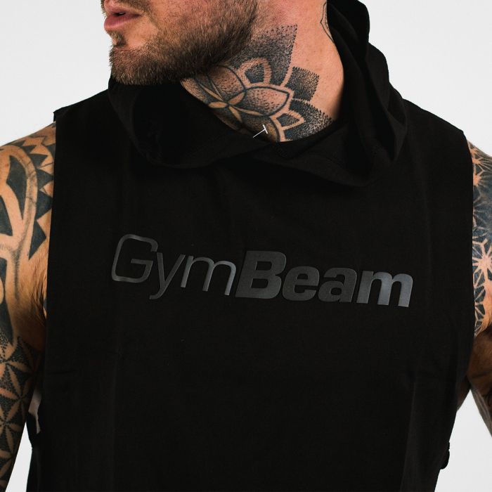 Leibchen für Männer Hoodie Tank Top Black ist ein sportliches Unterhemd aus atmungsaktivem und saugfähigem Material, in dem Sie sich beim Training und in der Freizeit bequem fühlen. Der einzigartige Schnitt unterstreicht Ihre ausgearbeiteten Hände und den Rücken, wodurch Ihre Figur hervorsticht.