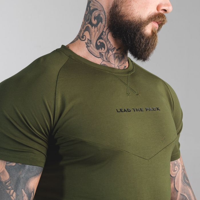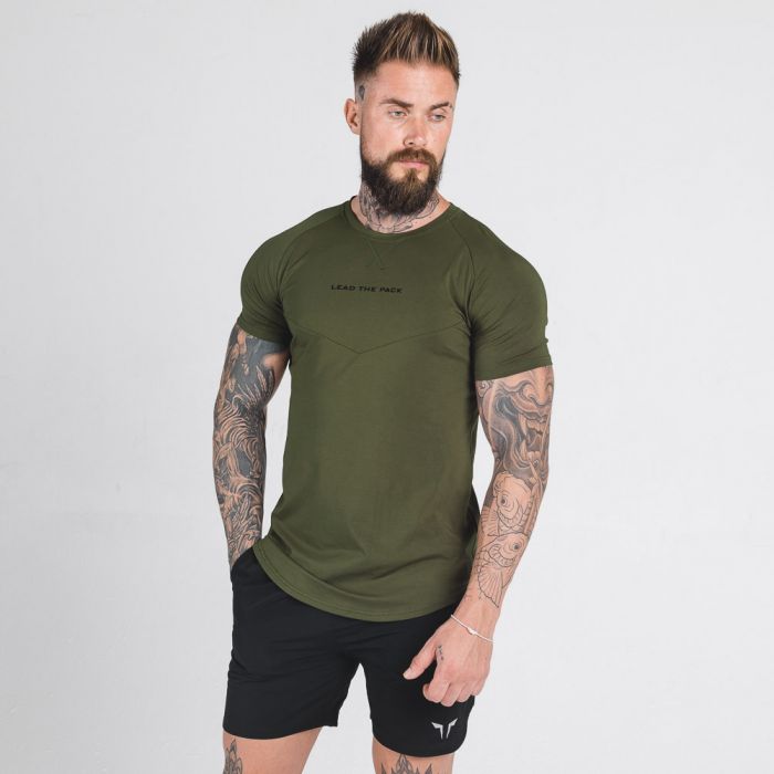 Statement Tee Olive Green hat einen modernen Schnitt, bei dem deine zerrissenen Schultern und Bizeps perfekt zur Geltung kommen