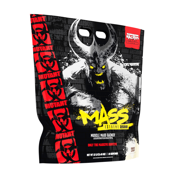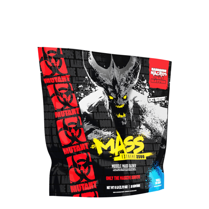 Mutant Mass Extreme ist eine komplexe Mischung mit einem hohen Anteil an schnell absorbierbaren Kohlenhydraten und Proteinen in Form von Molkenisolat, -konzentrat und -hydrolysat. So unterstützt es den Muskelaufbau und -erhalt, sowie gesunde Knochen. Außerdem ist es mit wichtigen Mineralien angereichert.