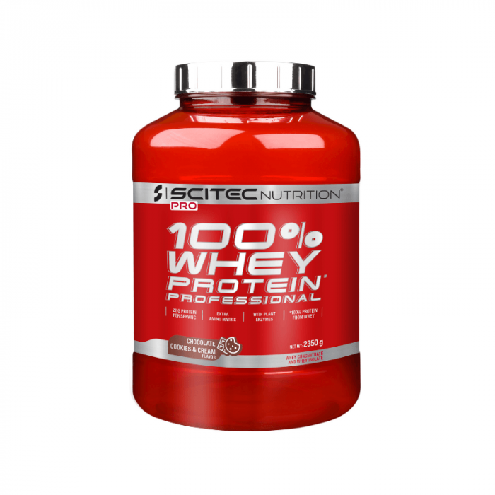 100% Whey Protein Professional ist eine 73% ige Proteinmischung aus ultrafiltriertem Molkenkonzentrat und -isolat. Es hat eine hohe biologische Wertigkeit, enthält 47,5% anabole Aminosäuren und 10% der intakten Proteinfraktion des das Immunsystem fördernden Immunglobulins. Es zeichnet sich durch einen niedrigen Laktosegehalt aus und ist mit L-Leucin, Taurin und L-Glutamin sowie einer Mischung von Verdauungsenzymen angereichert.