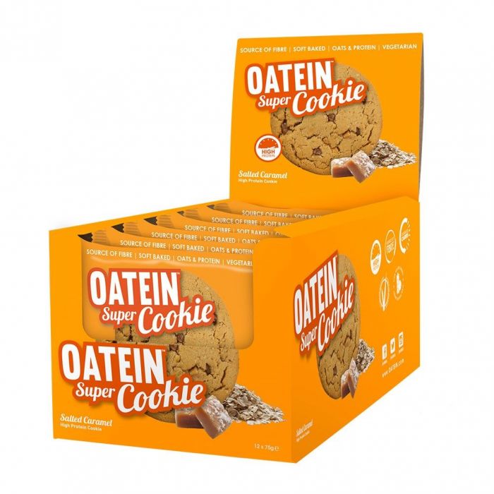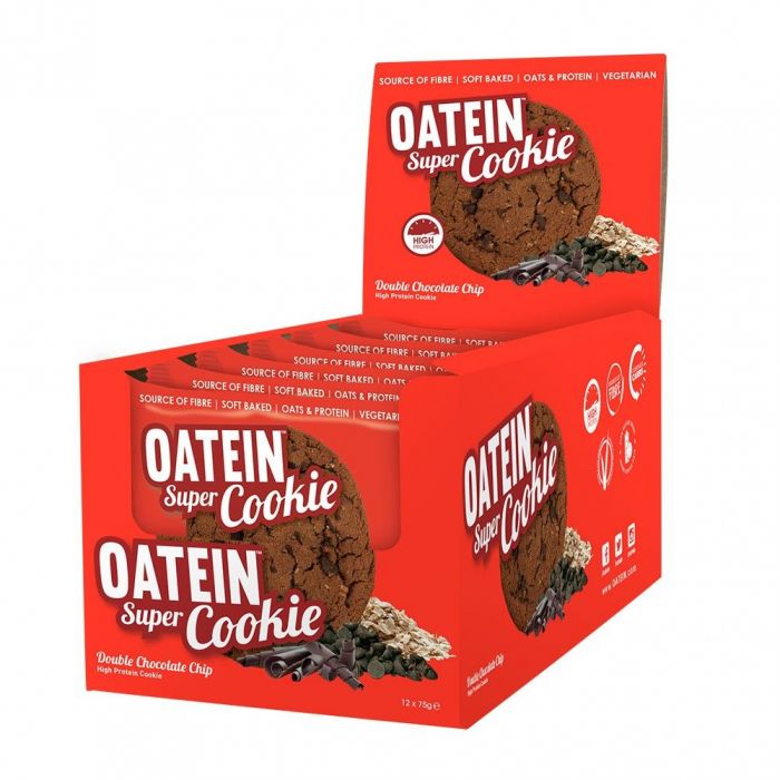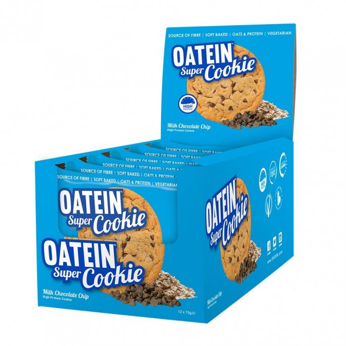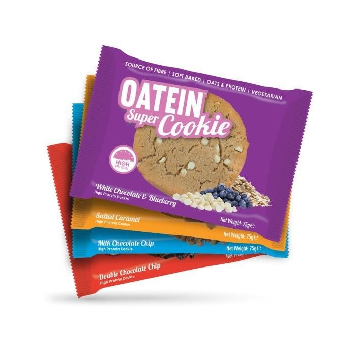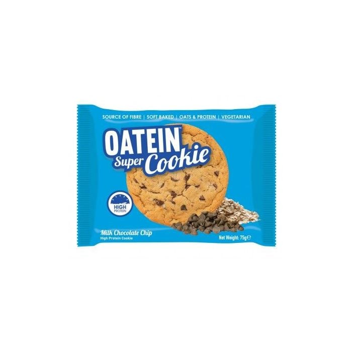 Oatein Super Cookie präsentiert köstliche und weiche Kombination von Oats und 16 g Eiweiß in mehreren Geschmacksrichtungen voller von Schokolade. Diese gebackene mürbe Cookies kann sich jeder genießen. Mit dem Gewicht 75 g macht satt und verstoßt Lust auf etwas Süßes. Es liefert gesunde Nahrungsstoffe und ist bessere Alternative als Süßigkeit vom Supermarkt. Der Eiweißanteil im Cookie bilden Molke, Milch und Erbsen-Isolat. Ballastoff bilden Hafer und Schicor. Vor und nach dem Training, jederzeit im Tag oder auch als unerwartetes Geschenk für Fit Persone ist Oatein Super Cookie ideal.