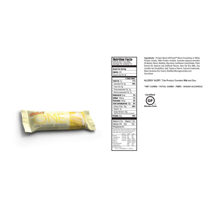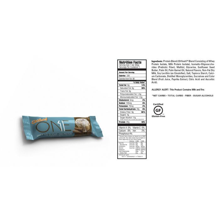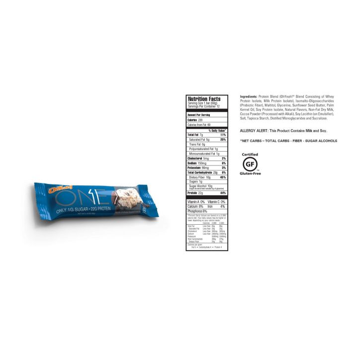 Oh Yeah! ONE BAR ist ein köstlicher Riegel, der bis zu 22 g hochwertige Proteine (Molkenproteinisolat und Milchproteinisolat), nur 1 g Zucker und bis zu 10 g Ballaststoffe enthält. Es bietet zarte Geschmacksrichtungen, eine hochwertige Proteinmischung und eine feine Textur. Genießen Sie es zu jeder Tageszeit nach einem anstrengenden Training oder auf dem Weg zu Ihrem Ziel.