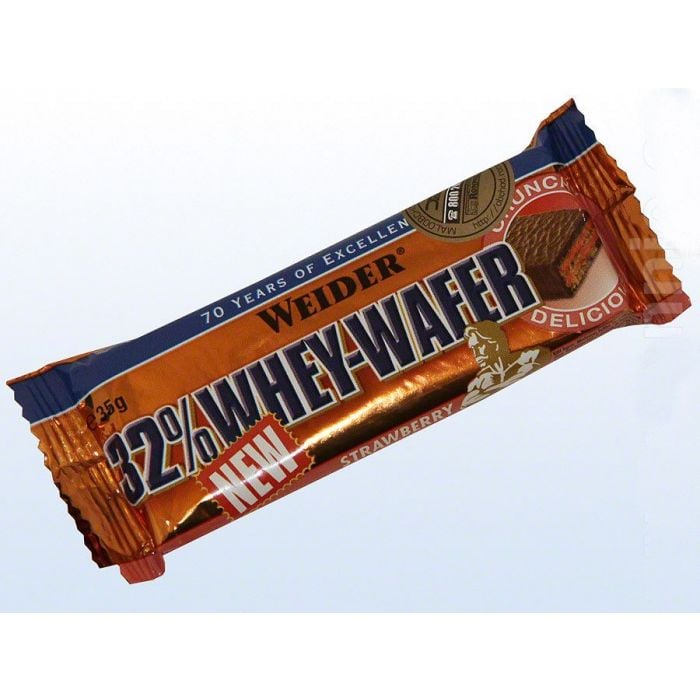 32% Whey Wafer Bar ist ein Proteinriegel mit 32% Eiweißanteil, der sich maximal schnell zu den müden Muskeln verschiebt und unterstützt die anabolische Prozesse in Muskelnzellen. Organismus nachfüllt benötigte Energie. Jeder Riegel enthält 180 g kcal und gehört zu den effektivsten Supplementen nach dem Training. Ist ideal für alle, die Muskel bauen wollen. Zu den besten gehört er auch dank seinen perfekten Geschmack und noch dazu belastet den Verdauungstrakt nicht. 32% Whey-Wafer verbindet in sich knusprige Waffel voll von hochwertiges Eiweiß mit langsam zergehende Schokolade, einfach zu sagen - eine Nascherei!