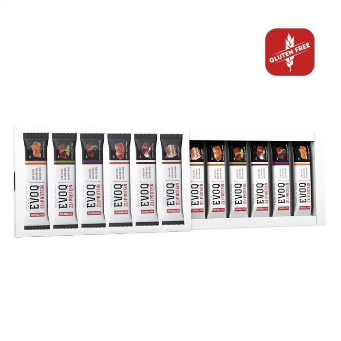 EVOQ ist ein leckerer kohlenhydratarmer Proteinriegel, der bis zu 21 Gramm Eiweiß, Ballaststoffe, Zink und Kolostrum enthält - alles, was der Körper einer aktiven Person benötigt. Aber es enthält kein Gluten und Sie können es in sechs interessanten Geschmacksrichtungen genießen, wie salzigem Karamell oder Erdnussbutter.