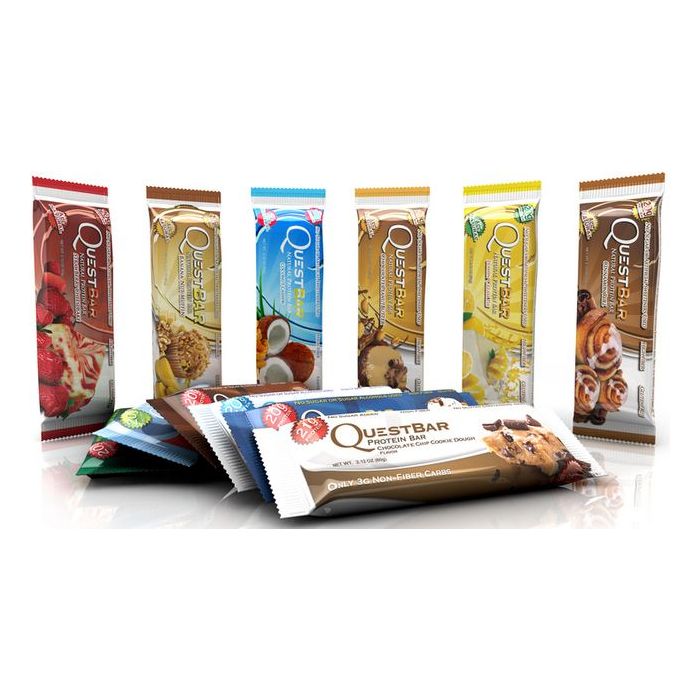Proteinriegel Quest enthält hochwertige bioverfügbare Proteine (Molkenproteinisolat, Milchproteinisolat), einen hohen Ballaststoffgehalt, einen sehr niedrigen Zuckergehalt und keine durchlässigen Fette. Es enthält keinen zugesetzten Zucker oder Gluten. Die Riegel werden in verschiedenen Geschmacksrichtungen angeboten und alle mit Saccharose mit Lo Han Kuo oder Stevia mit Erythrritol gesüßt.