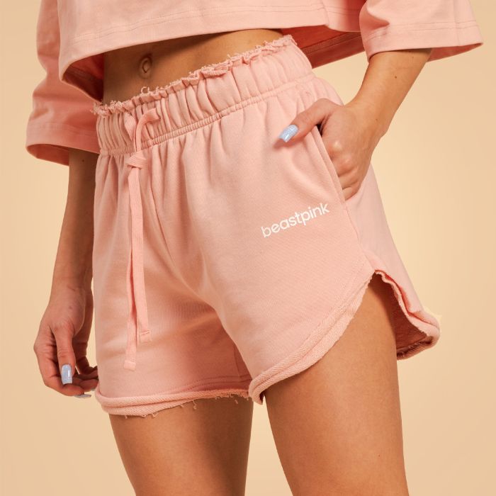 Um die Shorts so praktisch wie möglich zu machen, haben wir sie außerdem mit zwei Taschen an den Seiten und einer auf der Rückseite ausgestattet. So hast du deine Schlüssel, dein Telefon und andere kleine Gegenstände immer dabei. Neben der Funktionalität wirst du auch das minimalistische Design zu schätzen wissen, das sich leicht kombinieren lässt. Das einfarbige Design wird nur durch ein einfaches BeastPink-Logo auf dem Oberschenkel ergänzt. Auf diese Weise sehen die Shorts sowohl zu engen als auch zu weiten Oberteilen gut aus. Wenn du dir die Shorts genau ansiehst, wirst du die leicht offenen Säume bemerken, die ein interessantes Designelement sind. So kannst du dich von der Masse abheben und deine einzigartige Schönheit betonen. Die Shorts eignen sich hervorragend zum Spazierengehen, zum Dehnen, für Momente der Entspannung und für jede Aktivität von mittlerer Intensität.