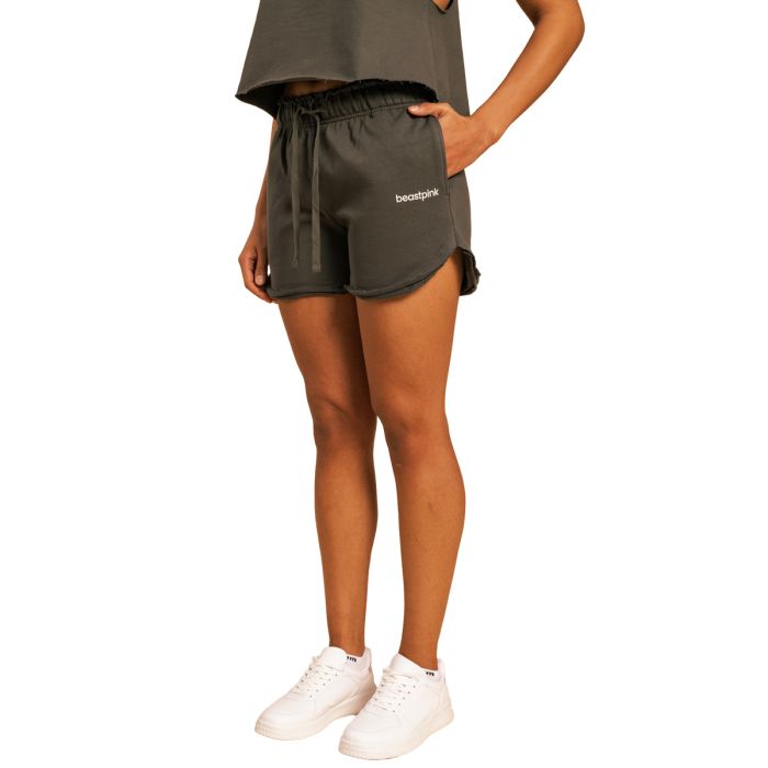 Um die Shorts so praktisch wie möglich zu machen, haben wir sie außerdem mit zwei Taschen an den Seiten und einer auf der Rückseite ausgestattet. So hast du deine Schlüssel, dein Telefon und andere kleine Gegenstände immer dabei. Neben der Funktionalität wirst du auch das minimalistische Design zu schätzen wissen, das sich leicht kombinieren lässt. Das einfarbige Design wird nur durch ein einfaches BeastPink-Logo auf dem Oberschenkel ergänzt. Auf diese Weise sehen die Shorts sowohl zu engen als auch zu weiten Oberteilen gut aus. Wenn du dir die Shorts genau ansiehst, wirst du die leicht offenen Säume bemerken, die ein interessantes Designelement sind. So kannst du dich von der Masse abheben und deine einzigartige Schönheit betonen. Die Shorts eignen sich hervorragend zum Spazierengehen, zum Dehnen, für Momente der Entspannung und für jede Aktivität von mittlerer Intensität.