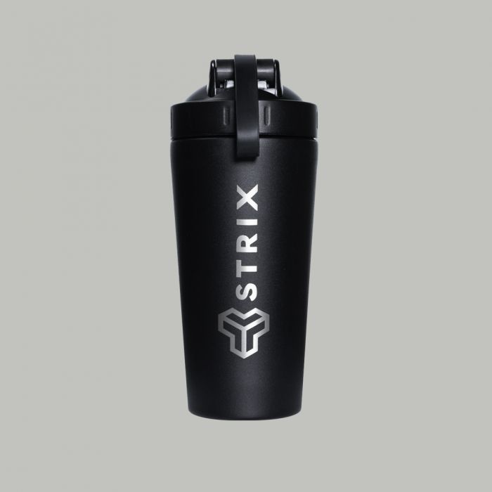 Der Fusion-Shaker ist ein Premium-Sportaccessoire aus Metall mit einem Volumen von 700 ml, das perfekt zu deinem anderen Sportzubehör passt. Das Edelstahldesign der Marke STRIX macht diesen Shaker nicht nur langlebiger, sondern verhindert auch das Zurückbleiben von unnötigen Gerüchen, die bei Plastikshakern oft ein Problem sind. Er ist BPA-frei, leicht zu verschließen, auslaufsicher und macht das Mischen deiner Nahrungsergänzungsmittel zu einem Kinderspiel.