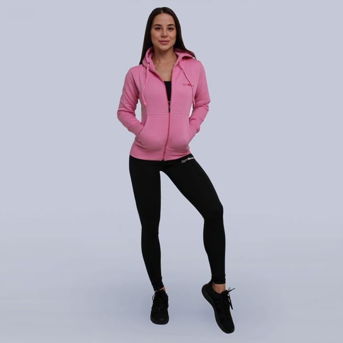 Sweatshirt für Damen Zipper Hoodie Baby Pink ist ein Fitnessstück, das Sie sowohl beim Training als auch an einem lockeren Tag warmhält