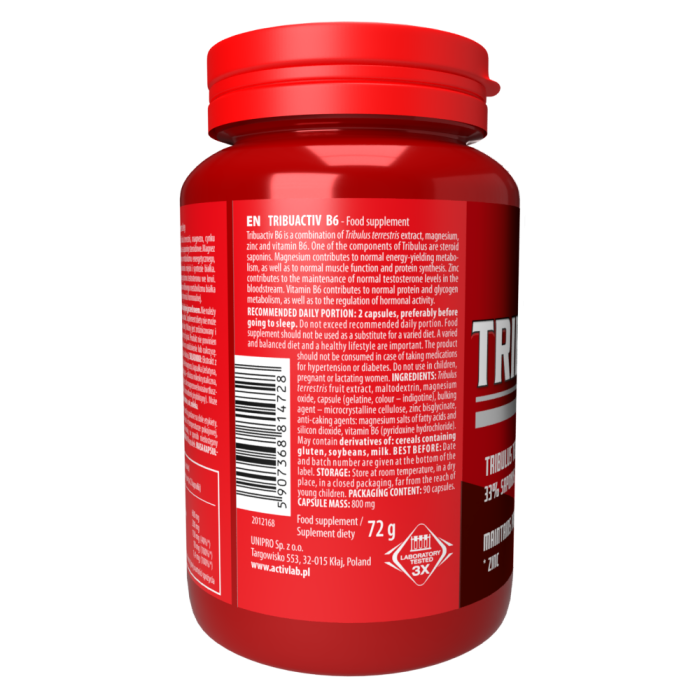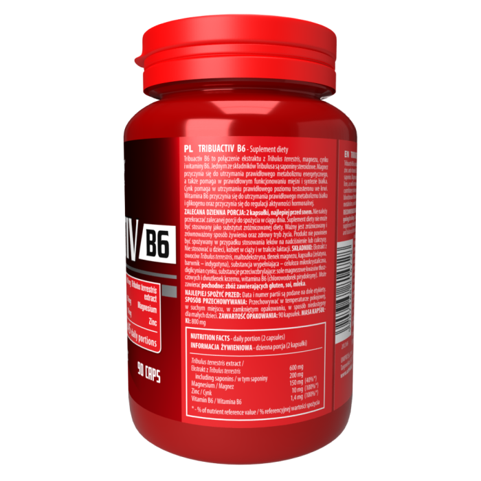 Tribuactiv B6 reguliert die Funktion der für die körperliche und geistige Aktivität wichtigen Hormone und die Steigerung der Libido in der Funktion eines Aphrodisiakums zur Steigerung der sexuellen Erregung. Bei aktiven Menschen bewirkt es einen Anstieg des Testosterons - durch Aktivierung des Hormons Lutein. Es beschleunigt auch das Wachstum der Muskelmasse und ist Entwicklung. Es wirkt insgesamt stimulierend auf den Körper. Tribulus terrestis ist kein hormonelles Produkt. Magnesium verbessert die Konzentration und beseitigt Müdigkeitssymptome. Es wird für körperlich und geistig aktive Menschen empfohlen. Es wirkt entspannend und stressfrei.