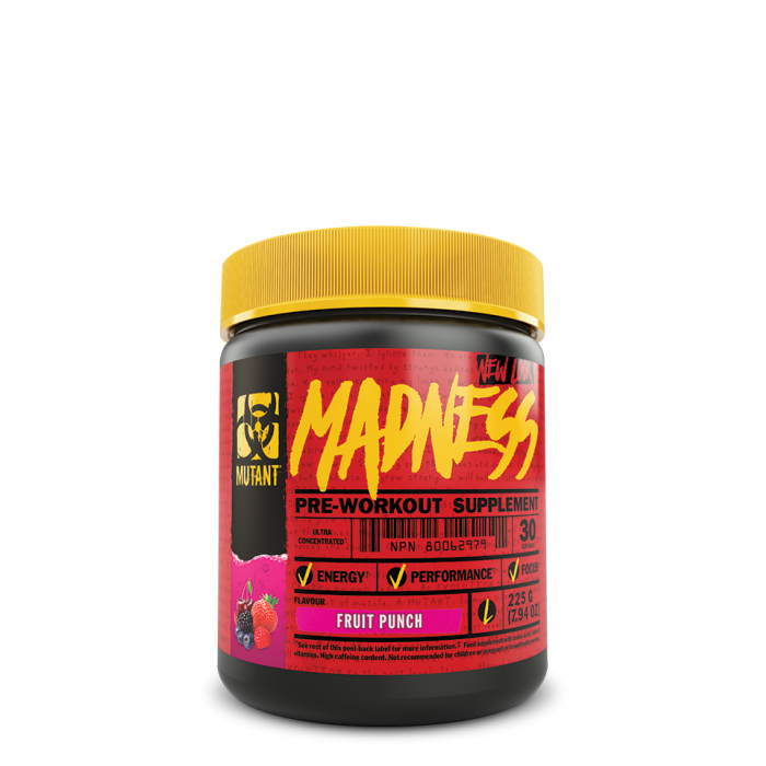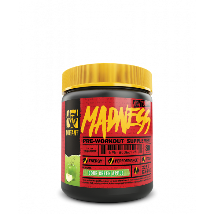 Mutant Madness ist ein Pre-Workout-Stimulans, das eine einzigartige Mischung aus Kreatin, Arginin, Citrullin und Beta-Alanin enthält, um dich perfekt zu pushen, Müdigkeit zu beseitigen und dich auf hochintensive Workouts vorzubereiten. Eine Dosis enthält bis zu 500 mg Koffeinmatrix aus fünf Quellen. Es hat einen ausgezeichneten Geschmack.