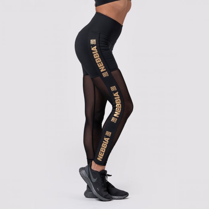 Women's Intense Gold Mesh Leggings sind einzigartige Fitness-Leggings für Frauen, die von den Oberschenkeln bis zu den Knöcheln ein extrem luftiges Mesh haben . Es absorbiert perfekt Schweiß und Feuchtigkeit während des Trainings, verleiht Leggings aber auch unbändige Weiblichkeit. Der hochelastische Bund passt sich perfekt Ihrer Figur an und betont Ihre Kurven. Die Leggings sind außerdem mit speziellen Nähten versehen, um Ihren Hintern zu formen, und mit einem stilvollen goldenen Nebbia-Logo . Entdecke ihren Komfort und genieße es, sie beim Training, HIIT-Übungen, Laufen, Cardio, Yoga oder Pilates zu tragen.